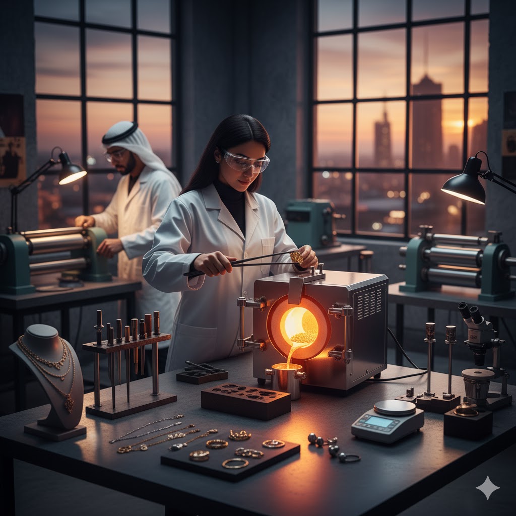 بيئة مبتكرة لتشكيل المعادن الثمينة (كالذهب والفضة) باستخدام أفران صهر دقيقة وأجهزة تشكيل متطورة لإنتاج قطع فنية راقية.